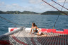 The afternoon sailing was great, making about 12 or 13 knots - it felt like we were flying, especially standing at the front of the webbing. The water rushed right under your feet. A great all day trip out in the sunshine whizzing round the bay. I love the New Zealand mentality of "if it's good, we'll run late", so different to the current British mentality of "we'll be back early if anything because I want to go home".