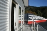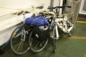 After a few hours of sleep we rubbed our eyes and rolled into the Interislander check-in desk! We thought we had made it by the skin of our teeth and indeed, were told by the check-in clerk to go "straight round to board" but when we got to the bit where the bikes board, which turned out to be also where the trains board(!?), there was a small delay so we had to wait and watch loading shenanigans for half an hour. Trains on a boat! Neither of us had ever seen this before. And even more scary, the trains had no driver! A remote controlled train was depositing and collecting many 43000kg containers onto the bowels of the ferry. It was fascinating to watch. Then they started reversing brand new cars at high speeds onto the ship! Eventually we were allowed to walk our bikes on (no riding on allowed as someone had recently fallen off doing this and scraped their nose on the grating), tie them up and climb the many staircases up to the floors where normal people gather.